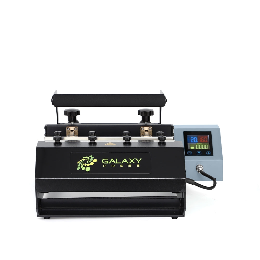 Con dos tornillos a presión para garantizar un mejor ajuste y presión sobre el producto a sublimar. De esta manera conseguiremos que el diseño a transferir tenga una calidad y uniformidad increíble.